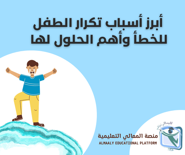 أحد أبرز أسباب تكرار طفل للخطأ : 1- برأيه أنه لم يخطئ . 2- أهله لم يفهموا الوضع . 3- يعاقب بعقاب بسيط . 4- تعوّد الطفل على العقاب . 5- الطفل غير مدرك للمطلوب . 6- فرض أمر واقع على أهله . 7- تناقض في استخدام العقاب . 8- نجاح الطفل باستفزاز الكبار. و